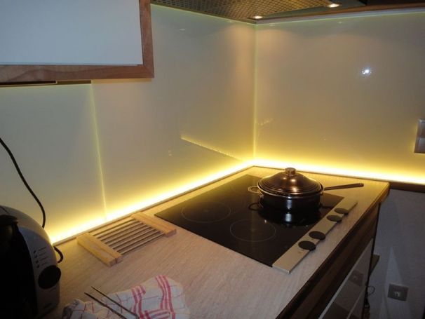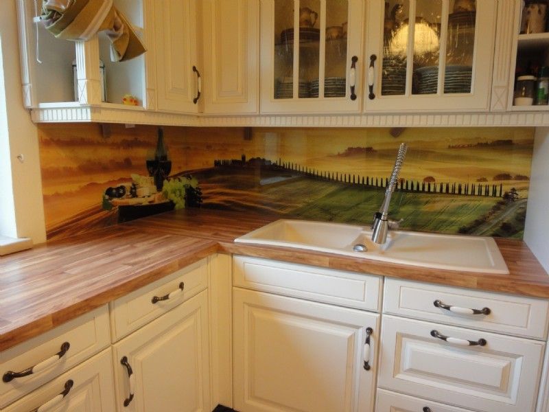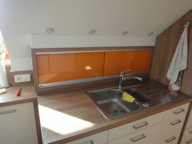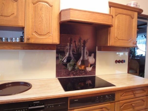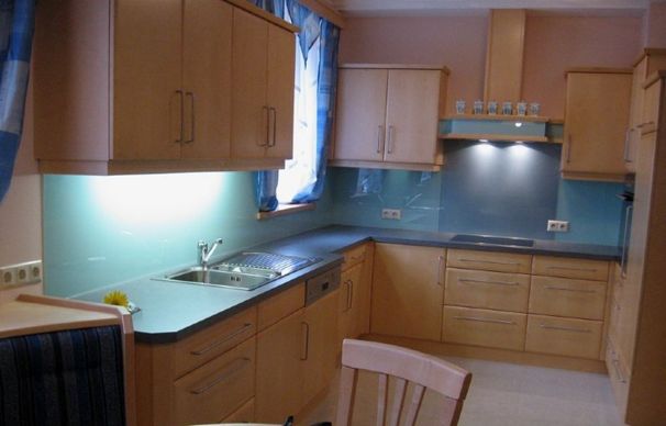 Wir kommen zu Ihnen nach Hause, nehmen Maß, fertigen Ihre Glasrückwände nach Wunsch mit allen notwendigen Bohrungen für Steckdosen und Armaturen und montieren fachgerecht.