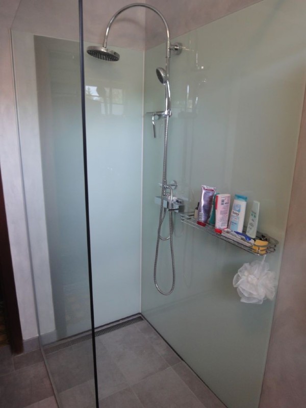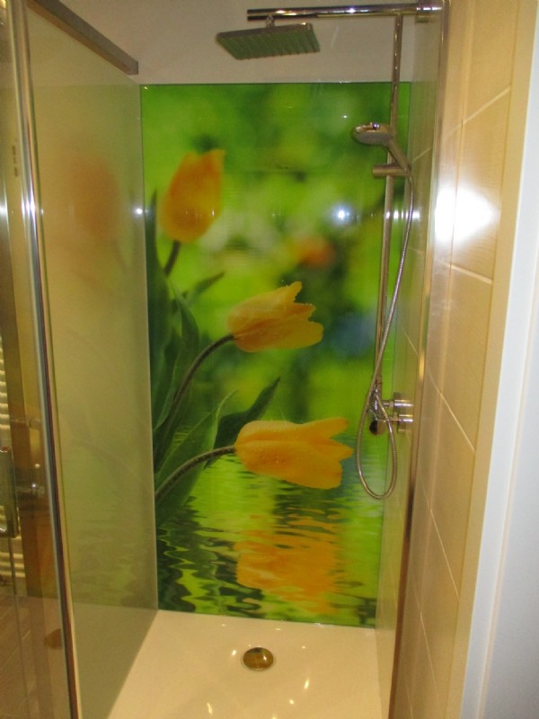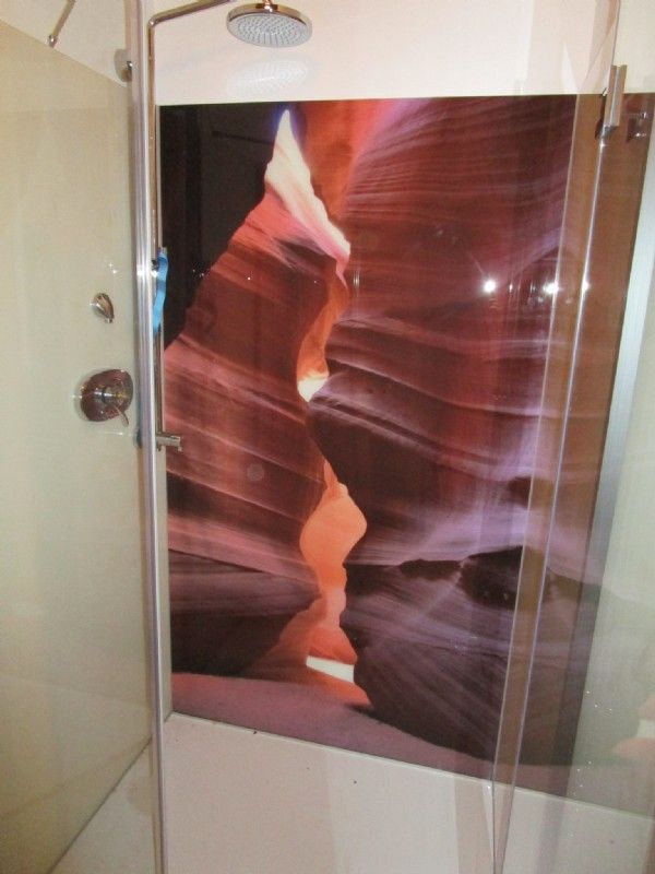 Doch besonders optisch kann Glas hier sehr viel bieten: ob in dezenten Pastelltönen oder mit kräftigen Farben, die Glasrückwand gibt erst das gewisse „Etwas“. Oder möchten Sie einen Wasserfall in höchster Farbbrillianz als Duschrückwand? Fotodruck mit Motiven nach Wahl auf extraweißem Glas macht es möglich, und in Verbindung mit leicht zu reinigender Oberflächenbeschichtung haben Sie auch bei kalkhaltigem Wasser jahrelang Freude an Ihrem Einzelstück.
